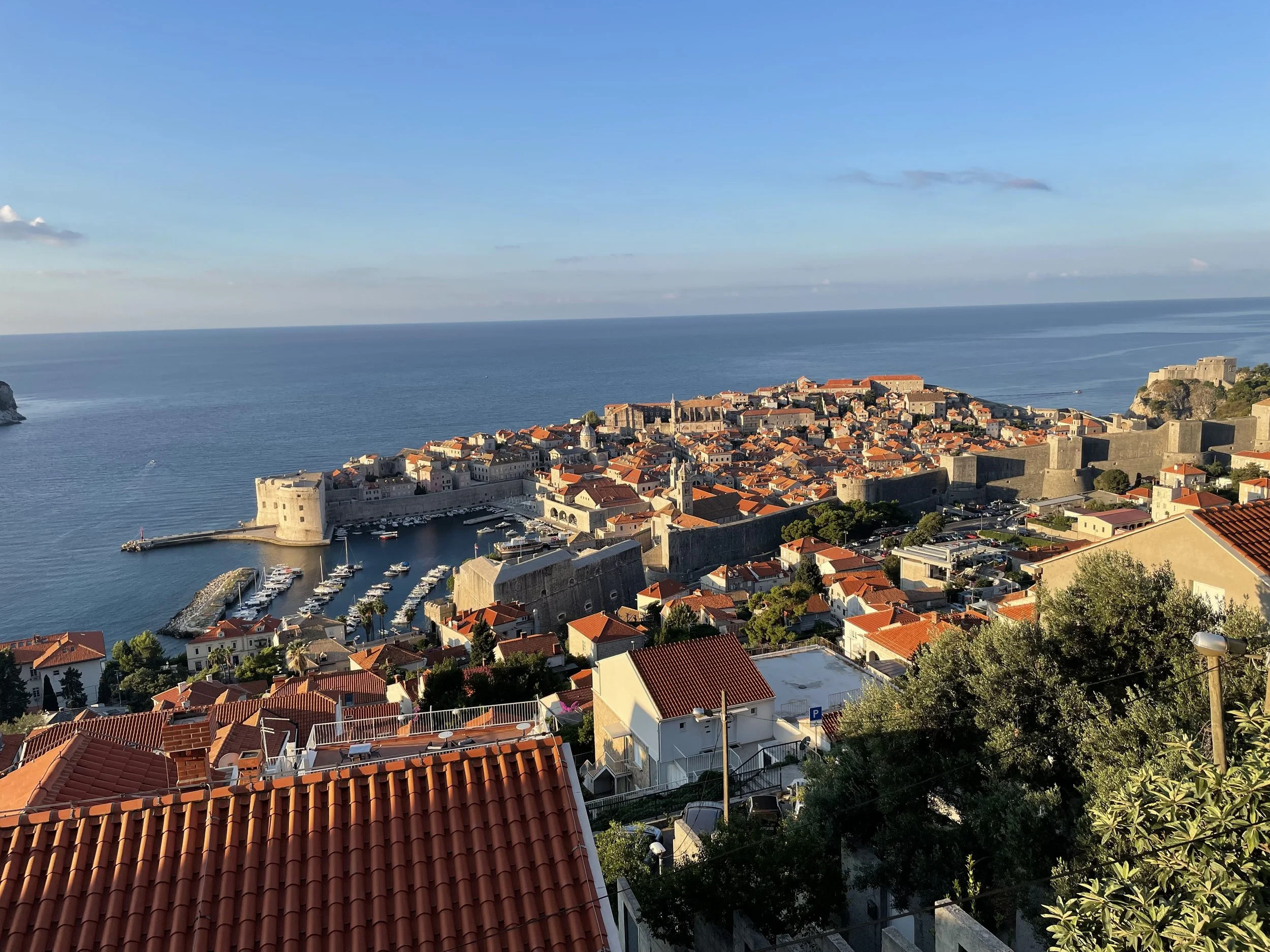 Once we arrived in Dubrovnik Harbor, we took a quick taxi to our Airbnb. This place had panoramic views of Old Town and the harbor from the large terrace (can you tell I love a good terrace view?) While it was definitely a splurge (again, honeymoon vibes!), it was the perfect base for exploring the city.